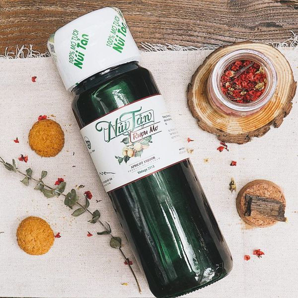 Núi Tản: Mơ rừng Ba Vì tươi, mật ong tự nhiên, nước khoáng, đường; lên men tự nhiên 12-18 tháng.